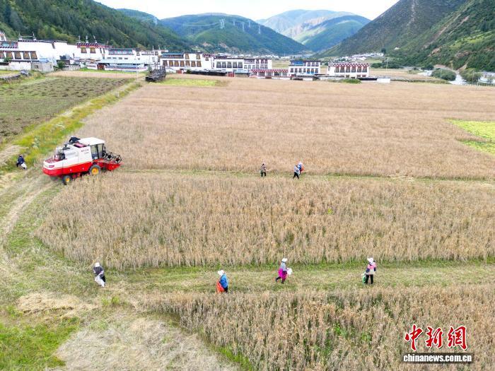 9月中旬开始,乡城县各地的青稞陆续迎来丰收时节。