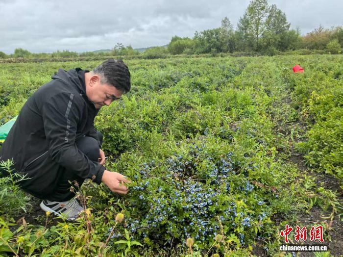 沿着加漠公路一路向北,松林苍翠、松香扑鼻,经过漠河市区,再驶过一条林间小路,一座写有清风庄字样的牌匾映入眼帘,位于漠河市西林吉镇黑山村的清风庄蓝莓基地到了,放眼望去,绿油油的蓝莓田里,一颗颗“蓝珍珠”密密麻麻挂满了枝头。