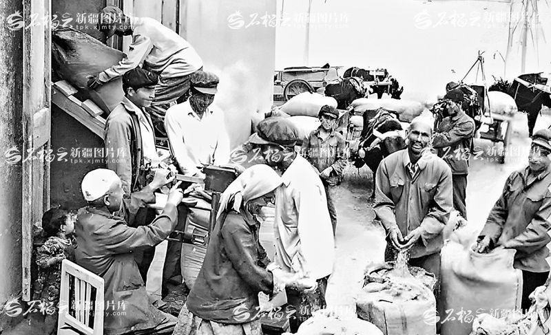 1980年秋,岳普湖县阿其克公社农民首次向国家上交商品粮。 图片由新疆图片库提供