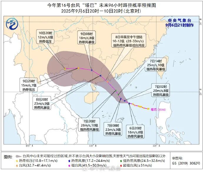 根据中央气象台9月6日20时44分发布的台风快讯,位于南海的热带低压,已在9月6日20时加强为今年第16号台风“塔巴”。