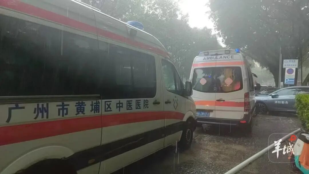 现场陆续有7辆消防车到场救援,2辆救护车已抵达。