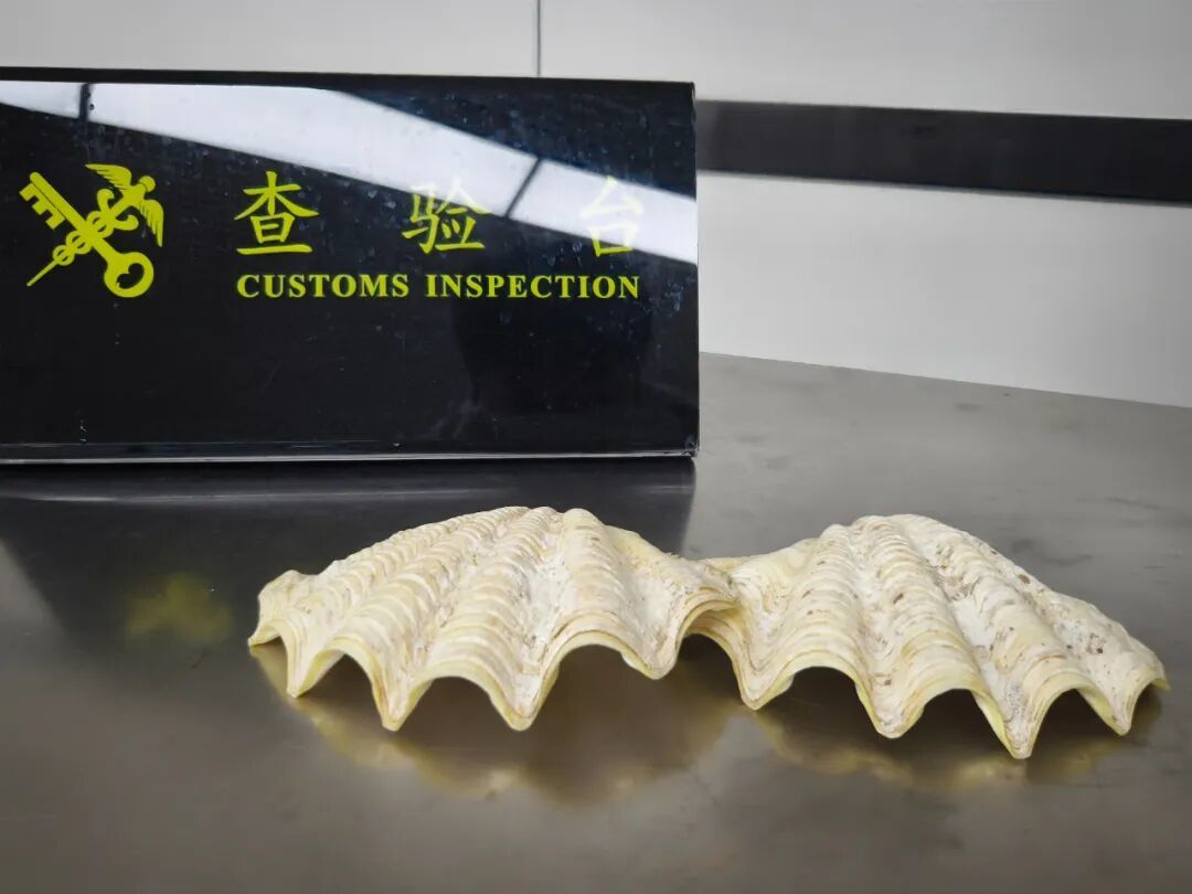 当日,罗湖海关关员在对进境旅客进行监管时,发现一名男性旅客进入海关监管区未向海关申报,且其携带的行李物品机检图像异常,海关关员随即对其进行拦截检查。经进一步检查,海关关员在该旅客行李箱内发现用透明收纳箱存放的仿贝壳形状的塑料摆件1箱和疑似砗磲2个。后经深圳海关动植物检验检疫技术中心鉴定,以上疑似砗磲为番红砗磲,属于《濒危野生动植物种国际贸易公约》(CITES)附录Ⅱ中列明物种。