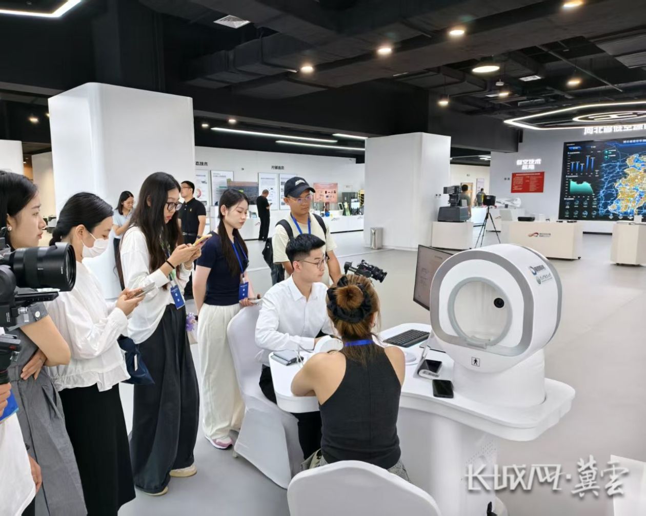 在雄安未来之城场景汇科创园,河北中医药大学崔子龙演示中医四诊仪。长城网·冀云客户端记者 段美嘉 摄
