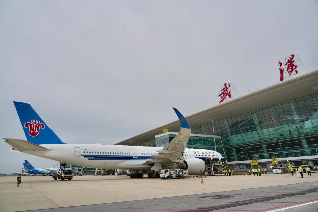 9月9日,CZ8003航班在武汉天河国际机场等待起飞。新华社发