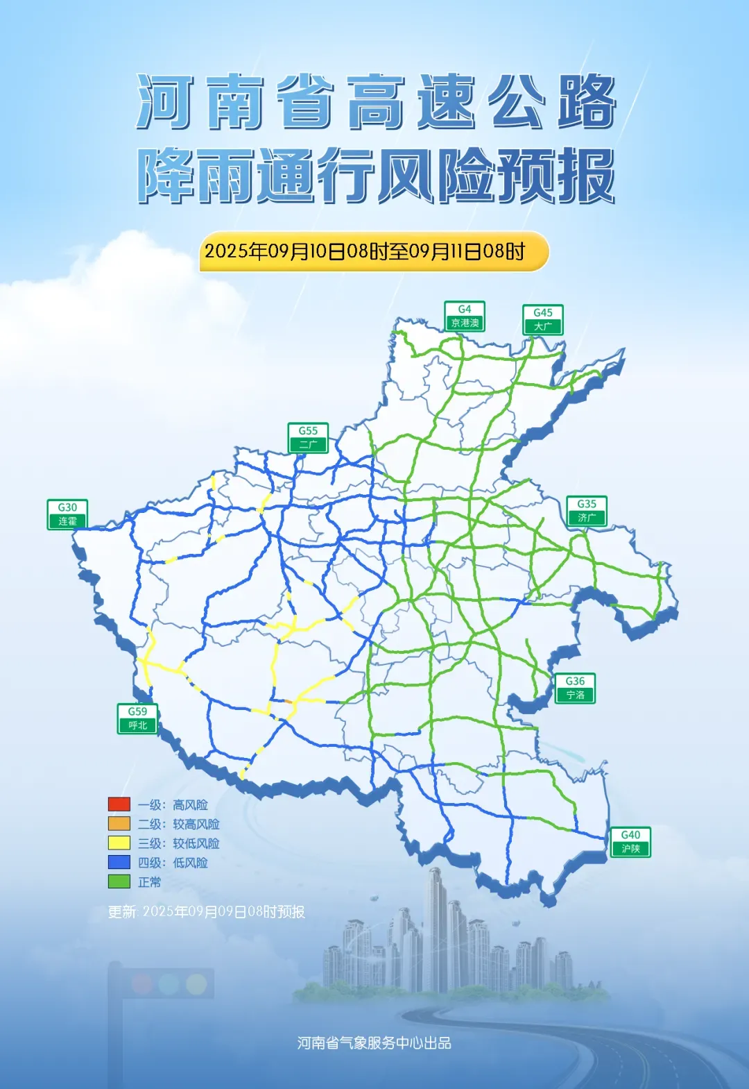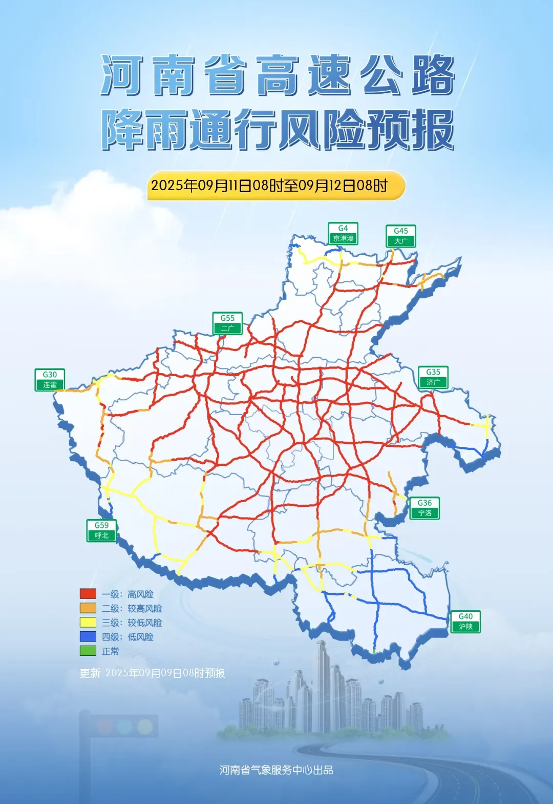 河南省交通运输厅相关负责人表示,将坚决落实省委、省政府工作部署,全面开展强降雨主动防御应对,做到会商研判、排查整治、公路巡查、监测预警、力量预置、交通管控“六个到位”,确保全省交通运输行业安全度汛。在此,温馨提示广大司乘人员:暴雨天气请尽量减少不必要的出行。如确需出行,请提前了解路况信息,合理规划行程,避开低洼易涝和地质灾害高风险路段。行车时请保持安全车距,减速慢行,开启雾灯和危险报警闪光灯,注意观察路面情况,避免急刹车和急转弯。如遇积水路段,请勿盲目涉水通过,确保行车安全。