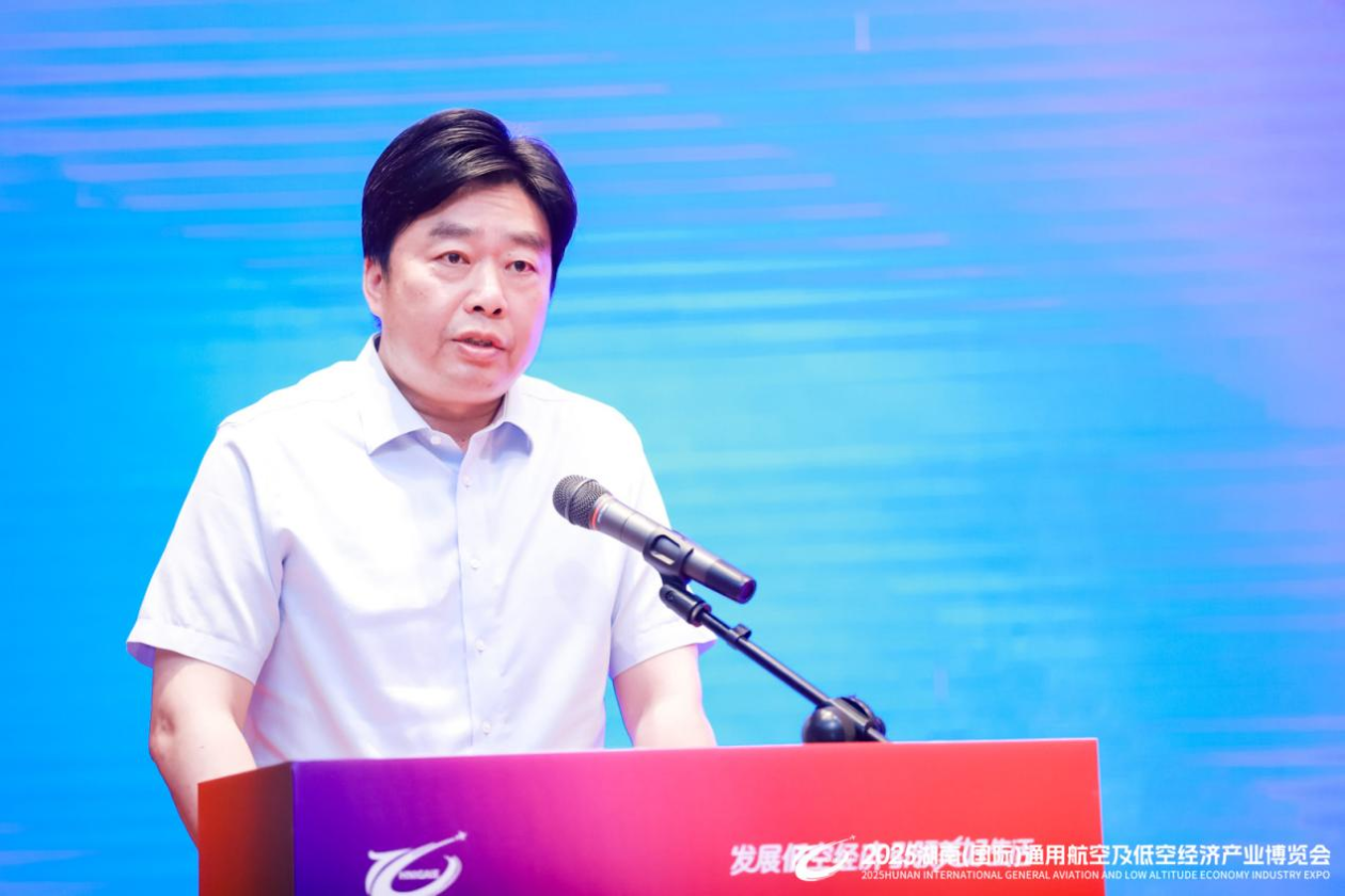 中国信息协会低空经济分会会长熊朝在致辞中对湖南在低空空域管理改革和低空经济发展方面取得的成就表示祝贺。他回顾了与湖南低空展的合作历程,并表示中国信息协会低空经济分会将发挥“国字号”社会组织优势,围绕“智慧通航、数字低空”创新发展服务平台定位,在低空基础设施、安全保障、数据要素等方面持续发力。“今年我们将继续深度参与本届博览会,举办‘低空基础设施融合创新发展交流活动’,共同探索产业高质量发展路径,为行业发展贡献力量。”熊朝说。