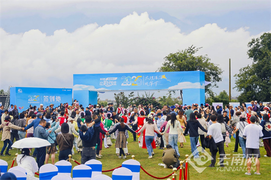 民族服饰走秀、非遗体验、歌舞打跳等互动环节的精彩活动吸引更多群众加入进来,解锁大理的另一种打开方式,体验“有一种叫云南的生活”。