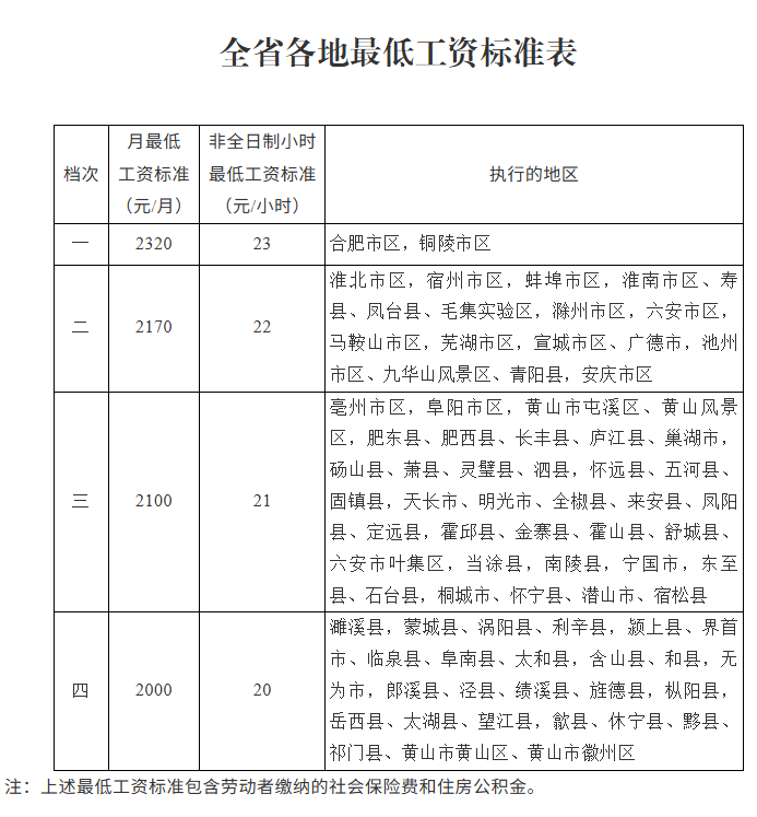 《安徽省人民政府办公厅关于调整全省最低工资标准的通知》