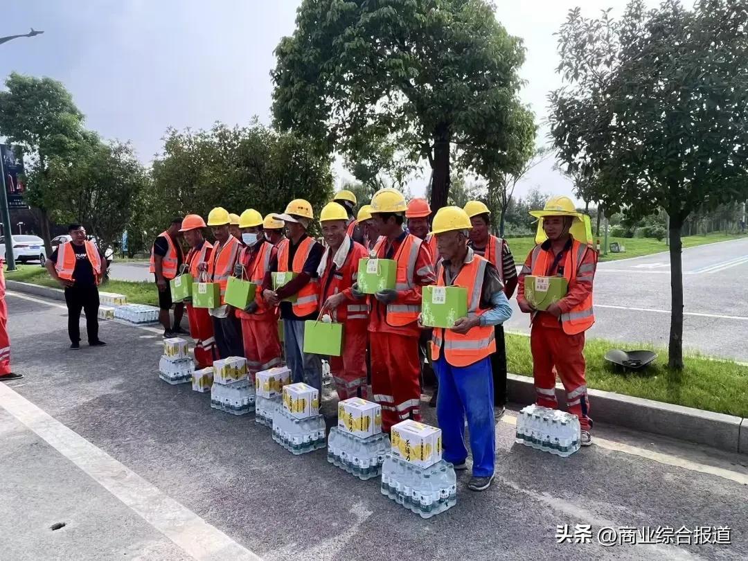 饮料、矿泉水、藿香正气水、毛巾……满载慰问品的车辆驶入工地,领导们亲手将物资分发到工人手中。“大家辛苦了!一定要注意防暑,安全第一!”握着工人的手,反复叮嘱。何总则详细询问了施工进展和困难,现场协调解决后勤保障问题。