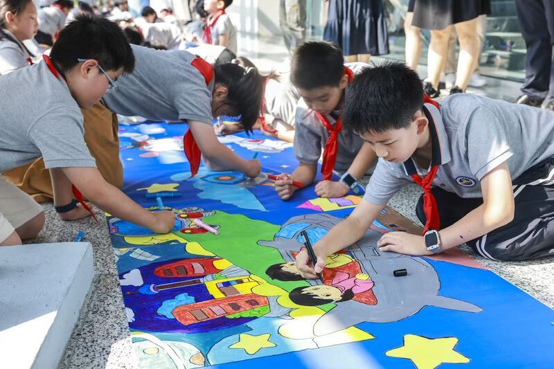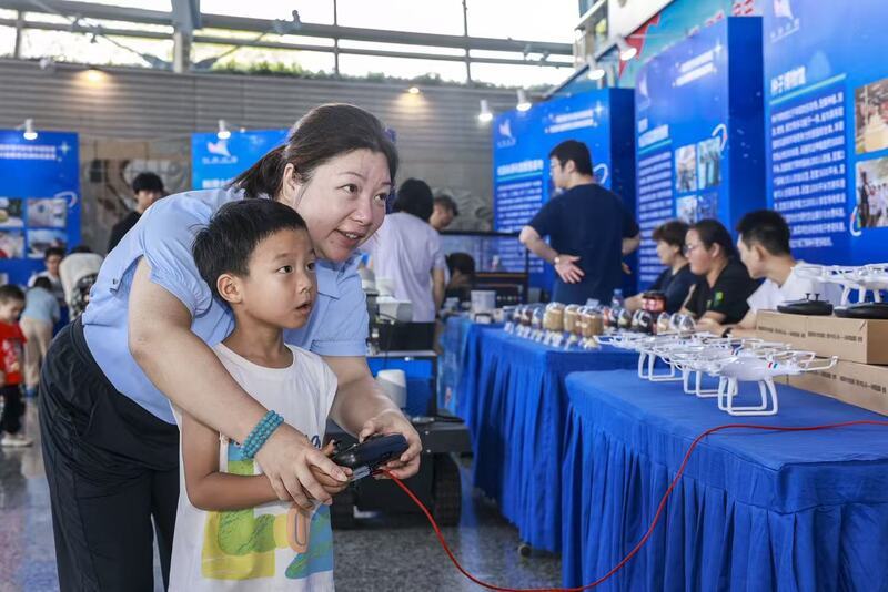上午9点,多家科技企业设立的科普展区便被孩子们迅速“占领”,家长们纷纷举起手机,记录下孩子触摸人形机器人、机器狗、无人机等前沿科技的身影。在这样热闹的氛围中,主场活动正式启动。