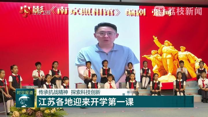 南京市力学小学开学第一课以“从胜利走向胜利”为主题。课堂上,师生围绕暑期档电影《南京照相馆》,分享观影感受,集体诵读儿歌《数城门》。淮安市周恩来红军小学学生们走进抗战旧址,来到99岁抗战老兵周洪道家中,聆听战斗故事。