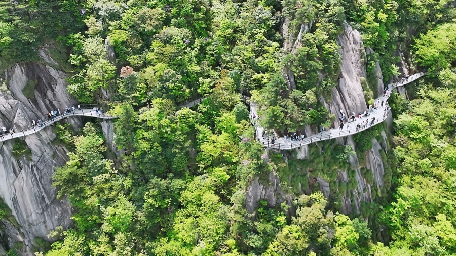 今年暑假,九华山“清凉游”备受游客热捧。在天台景区,两面巨大的山体墙壁上,199个红色“福”字在绿树青山映衬下格外耀眼。游客们乘坐索道登临天台途经此处,或踮脚触摸福字,或拍照打卡,或手机直播,招福纳祥,创造属于自己的仪式感。