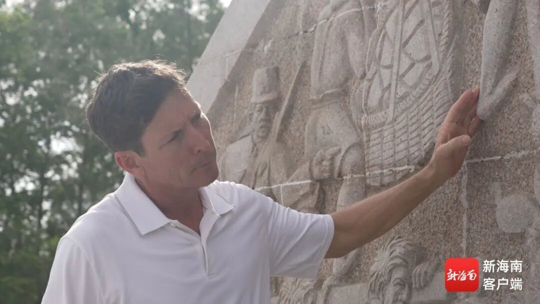 布兰登在东方八所鱼鳞洲寻访。记者 胡诚勇 摄