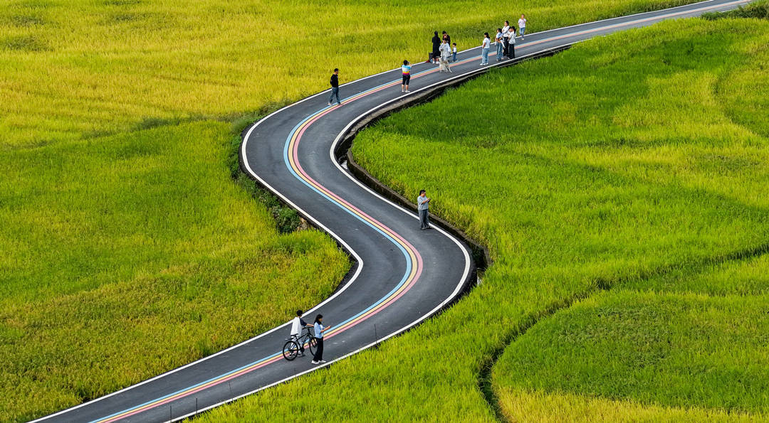 近日,河南省平顶山市鲁山县赵村镇小尔城村的“最美稻田”已进入黄熟待收阶段。金黄稻浪与乡村景致相映成趣,吸引周边县市市民及大批摄影爱好者专程前来观赏、拍摄打卡。