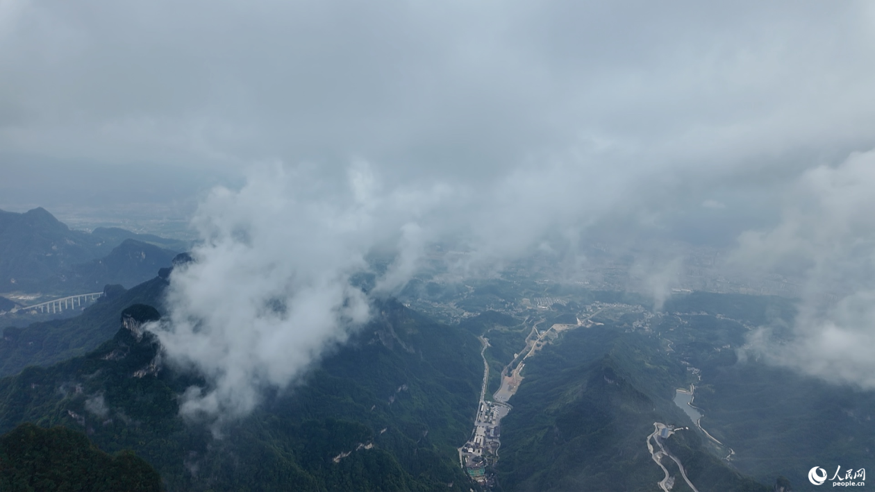 张家界天门山景区云雾缭绕。人民网 黄卓摄