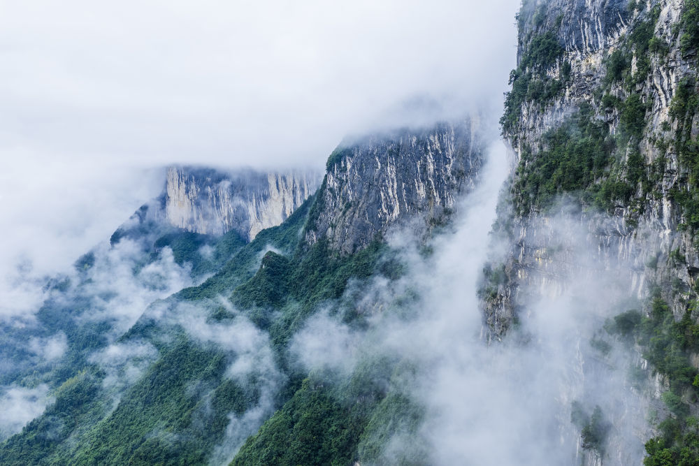 近日,位于湖北省恩施土家族苗族自治州恩施市的恩施大峡谷雨后初霁如仙境,绝壁林立,蔚为壮观。峻峭的山,灵动的水,与周边的民居共同绘成一幅美不胜收的生态画卷。
