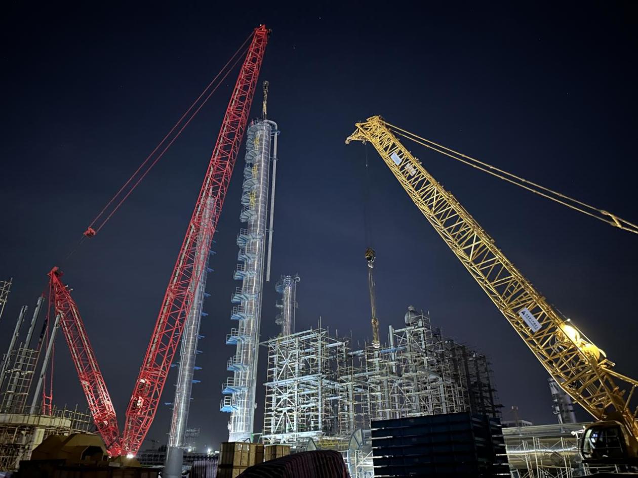 面对广西雨季长、台风多、高温湿热等气候挑战,项目团队充分发挥迎难而上的攻坚精神,日夜奋战、顽强拼搏,以144小时连续奋战,精准完成3台大型设备吊装;采取“遮阳棚+雾炮降温”组合措施,保障17.6万吋管道焊接质量,焊接合格率达98.05%;精细高效组织施工,先后顺利完成29座储罐安装和20座单体建筑施工。业主对公司“敢打硬仗,能打胜仗”的优良传统予以高度赞扬,并发来感谢信。