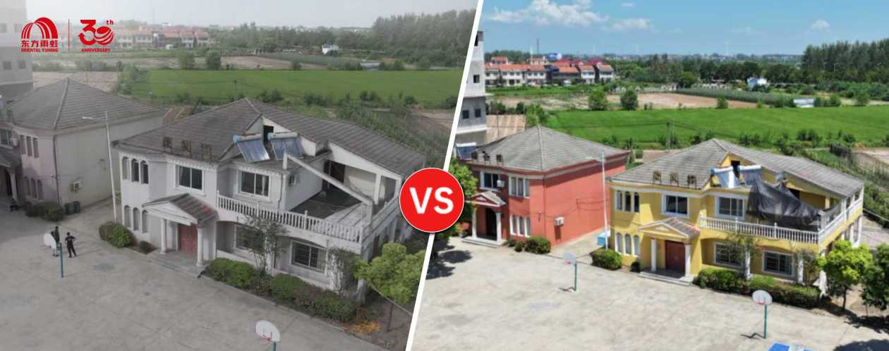 东方雨虹技术团队经过多次实地勘察,为学校量身定制了专业施工方案。值得一提的是,东方雨虹特别采用了专为乡村市场创新研发的墙艺涂防水装饰一体化涂料,它适用性广、耐候性强,能将防水与装饰功能完美融合,其丰富的色彩尤其契合孩子们对视觉环境的敏感需求,加之施工便捷、可喷可刷,且无刺鼻气味,整个工期仅用4天即全部完成,未干扰学校的正常教学与孩子们的学习生活。