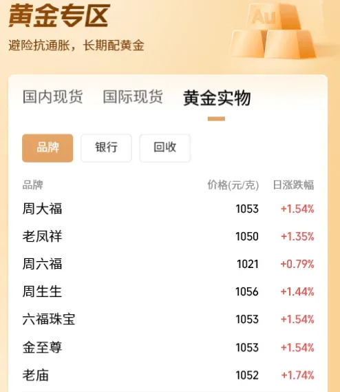 金饰价涨破1050元