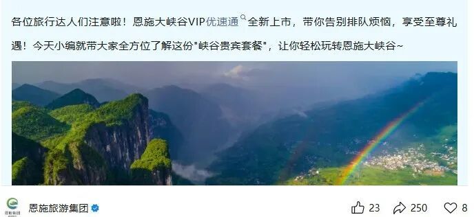 8月初,恩施旅游集团在其官方微信公众号发布了推出恩施大峡谷“优速通”的信息。