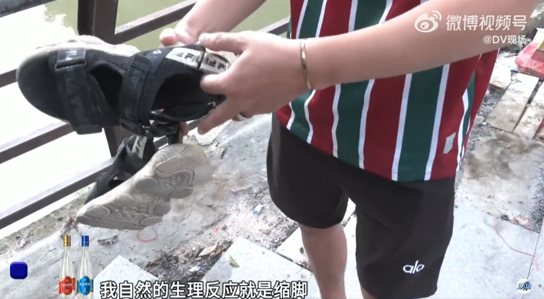 关先生表示,当时距离目的地只剩三公里左右,想咬牙坚持一下,毕竟要赚钱,所以就把鳄鱼搬回电动车的踏板上继续行驶。“还没到洛溪桥下坡阶段,它又动了,再次掉到地上。”关先生说他立刻打电话给商家,咨询为什么鳄鱼是活的却不告诉他,现在鳄鱼还在动。“商家建议我用脚踩住它,这样它就不会动了。”关先生说,他用脚踩住鳄鱼,但鳄鱼在挣扎时弄坏了他的鞋。