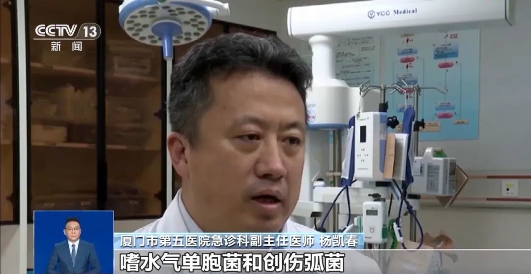 近期正值开渔季,厦门几家医院收治的创伤弧菌感染患者不断增加。厦门市第五医院急诊科副主任医师杨凯春表示,创伤弧菌、嗜水气单胞菌等在水中广泛存在,若被海鲜刺伤、划伤,或有伤口被水污染都可能有感染。