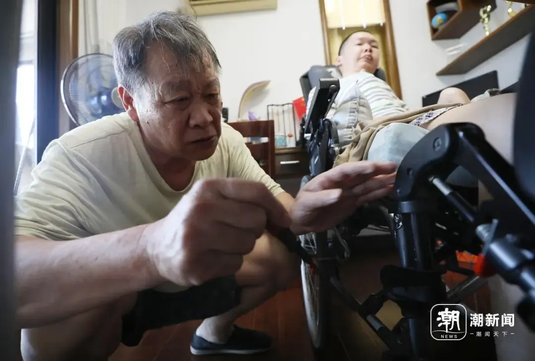 75岁的爷爷徐竹生仔细检查轮椅。潮新闻记者 汪驰超 摄