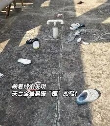 民警推测其是“惯犯”,跟踪找到它的生活区域发现,天台上全部是它叼来的鞋子,有单只的也有一双的,粗略估计有几十双。