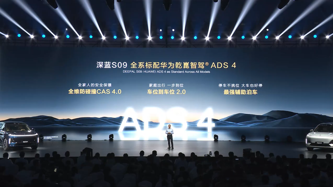 发布会现场,深蓝汽车推出的另一款车型深蓝S09同样亮点十足。它搭载了全新升级的华为乾崑智驾ADS 4,在安全与智能领域实现了全面进阶。深蓝S09的全维防碰撞系统CAS 4.0通过“全时速、全目标、全方向、全天候、全场景”五维覆盖,能够从容应对“鬼探头”、路面异物、误踩加速踏板等极端场景,全方位守护用户的用车安全。车位到车位P2P 2.0行业首发巡泊一体功能,将外部地图、园区地图和地库道路三张图合一,界面不切换,体验更丝滑。同时,新增高速ETC通行功能,真正实现了城市、高速、泊车三大场景的无缝衔接,让出行驾驶从耗费精力的任务转变为轻松、自由的享受。