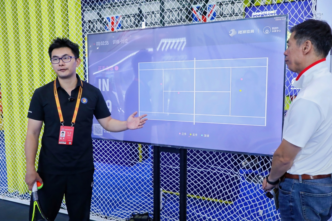 为了让更多观众有切身感知,橙狮体育把网球场搬进了服贸会。 “我们通过等比例缩放标准网球场,搭建一个真实运动场景,邀请参展观众进行实时对打体验,来展示AI技术为网球运动带来的全新科技革新。”彭卫称。