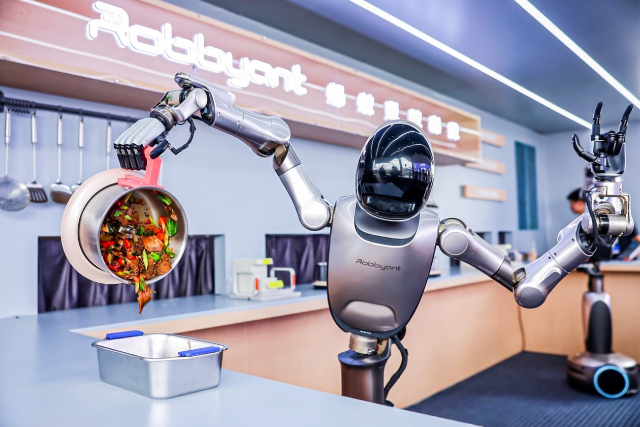 具身智能堪称多模态技术的 “最强实战场”。此次在2025外滩大会上亮相的灵波R1,带来的是餐饮场景演示。“机器人厨师”现场为观众烹饪四道菜品。该机器人具有多模态识别能力,能自动识别操作台上的各类食材和厨具,精准定位食材工具,从取菜、炒菜到清洁,全流程自动化,无需人工干预。