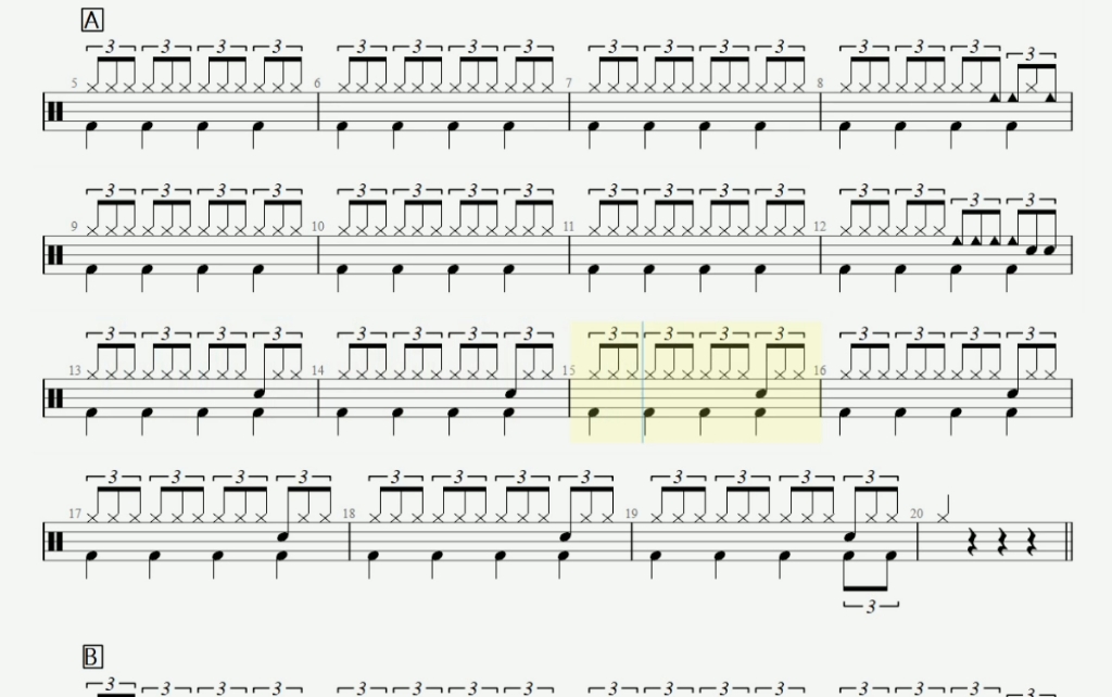 《唐剑波爵士鼓教程》六连音节奏型/Funky six groove完全教程,通过32小节功能谱,衍生出数百条六连音节奏型,全方位训练鼓手6的能力,让鼓手在演奏Funky音乐时得心应手,打出精彩绝伦的Groove!